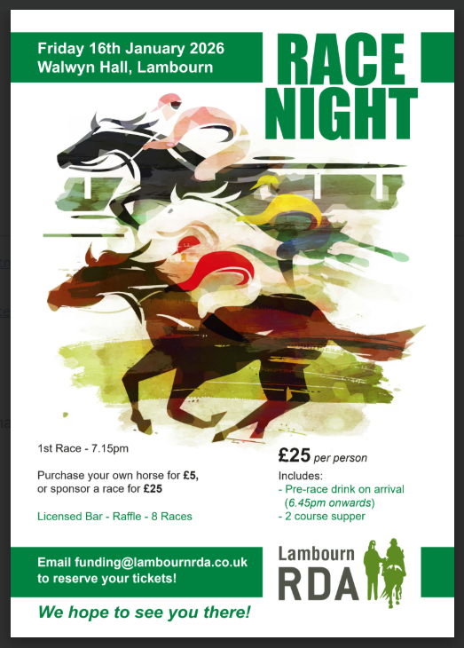 We currently have a waiting list, but do still get in touch as participants change all the time. Please contact Frances on chair@lambournrda.co.uk for more information.